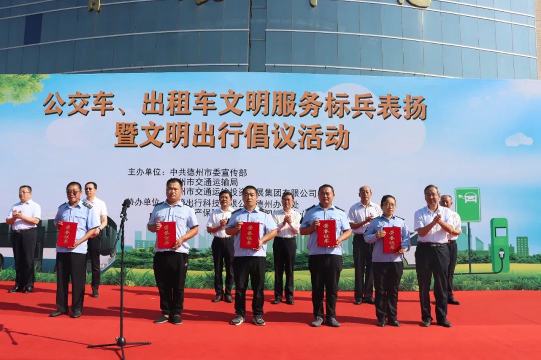8月29日,市委宣傳部、市交通運(yùn)輸局、市交投集團(tuán)聯(lián)合舉辦公交車、出租車文明服務(wù)標(biāo)兵表揚(yáng)暨文明出行倡議活動(dòng)。市交投集團(tuán)黨委書記、董事長張海輝為王秀明、李健、盛玉龍、王亮、任吉濤等獲得表彰的5名駕駛員頒發(fā)了榮譽(yù)證書。